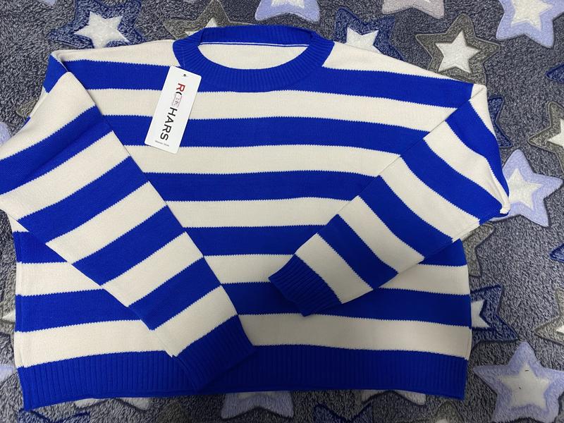 Джемпер кофта жіноча Розмір Оверсайз 48 -50 ПОГ - 57 см Довжина - 46 см Колір білий в синю полоску
