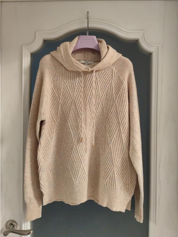 Джемпер женский с капюшоном, приятной расцветки, по бокам разрезы ,подойдёт на размер S, М, замеры указаны на фото.