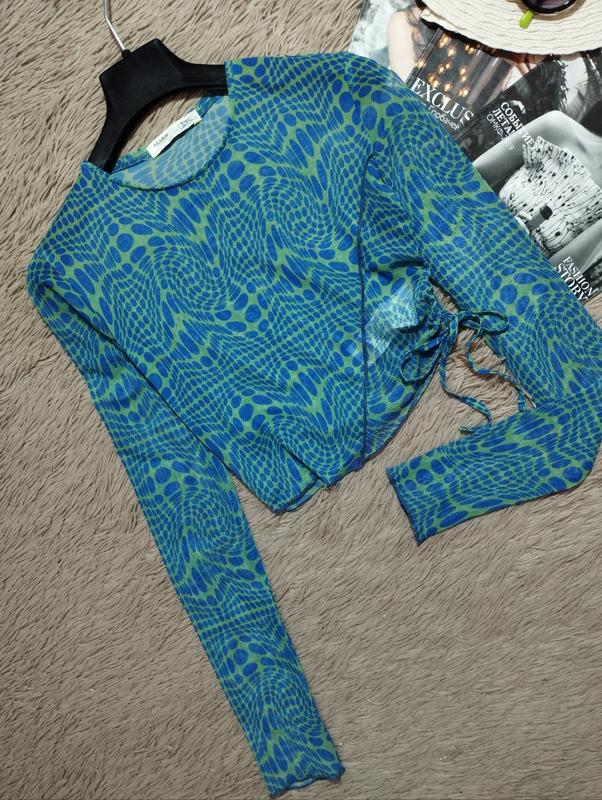 В идеальном состоянии. Красивый джемпер сетка. Ткань легкая, просвечивает, тянется. Размер 8/36/S, но смотрите по замерам Замеры (полуобхват): Грудь 34 (тянется до 46) Рукав 62 Длина от плеча 36