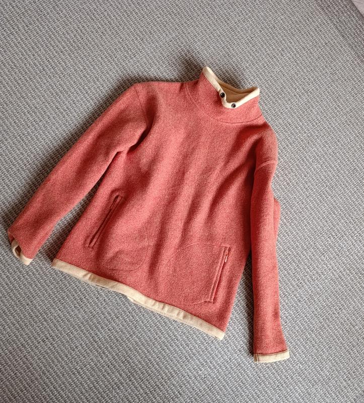 Верх шерсть, изнутри подшита приятной к телу тканью. Спереди два кармана на молнии. Между проймами 50+ По низу 51+ Длина 56 Рукав от горловины 70