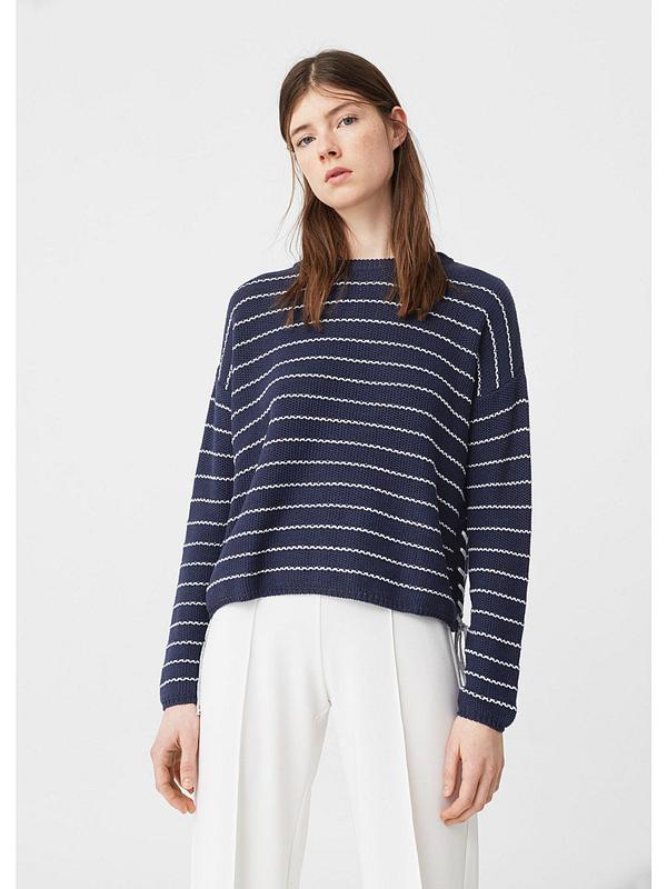 Продам нові светри фірми MANGO. Стильні светри, трохи укорочені, плечі опущені, з боків декоративні шнурки. Є помітна нитка люрексу. Склад: 46% акрил, 42% котон, 8% поліестер, 4% металік Розміри в наявності над фото: S: довжина від плеча — 50 см, ширина по спинці — 53 см, трійка від коміра — 65 см, внутр.довжина рукава — 43 см; М — ПРОДАНО: довжина від плеча — 52 см, ширина по спинці — 55 см, рукав від коміра — 66 см, внутр.довжина рукава — 43 см;