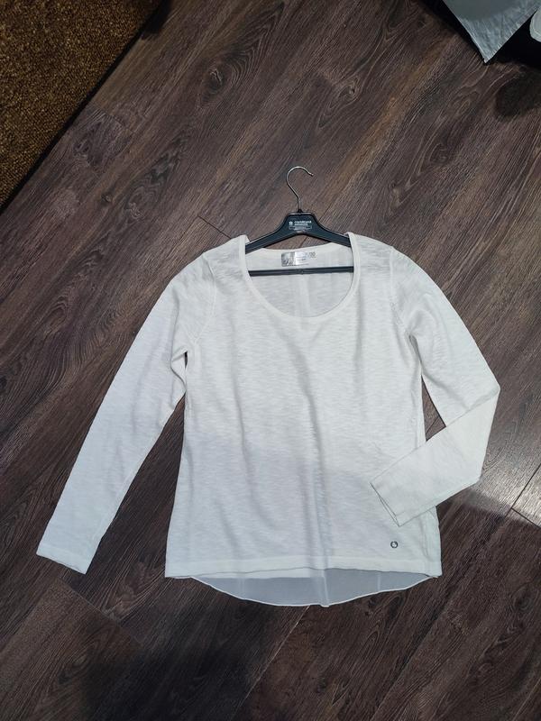 ⚠️⚠️ В наличии 3 штуки. Стильная кофточка известного Немецкого бренда Blue Motion, белоснежка, белоснежка, камера затемненная, нежное, приятное на ощупь трикотажное полотно, качество исполнения безупречная, кофтинка свободна за кроем, сзади двухслойная, с нежной шифоновой подкладкой, (только сзади), состояние новой вещи, без каких-либо признаков носки, сток. Размер по набору 36/38. ЗАМЕРЫ: плечи 36 см, расстояние от подмышки до подмышки 48 см, длина рукава 61,5 см, длина по спине 59 см, длина по спине по подкладке 64 см. Фото на теле не имеет. Делайте выбор сознательно, возврат не имеет.