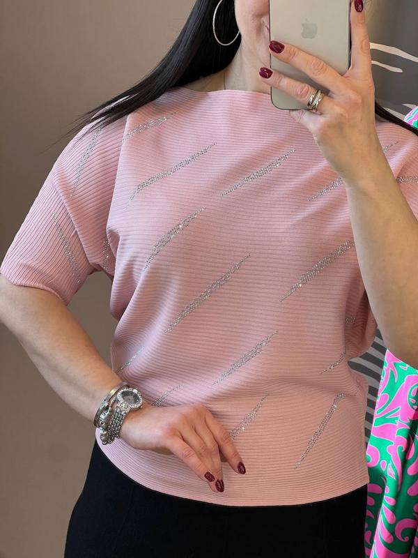 красивая и удобная кофточка абсолютно необходимый элемент одежды в весенне-летний период, она отлично сочетается с брюками и юбками, хорошо смотрится под ветровки и тренчи представлена вашему вниманию кофточка отлично садится по фигуре, подчеркивая ее достоинства, облегающий силуэт, небольшой рукав "летучая мышь" и вырез лодочка, подходят абсолютно всем, она выполнена из приятного к телу трикотажа, декорированного стразами размер 42-46 длина 56 см, объем груди по изделию 104-106 см, длина рукава от шеи 34 см код 0668