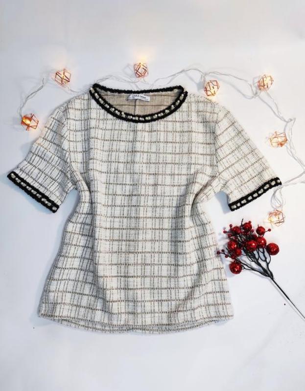 ✨ Стильная, удобная и универсальная - подойдет и для офиса, и для ежедневных образов. Плотная ткань, приятная к телу. Аккуратная окантовка на рукавах и воротнике добавляет шарма. 📏 Замеры: ▫️ Ширина по плечах — 36 см ▫️ Длина рукава - 22 см ▫️ Объем груди - 42 см ▫️ Длина - 51 см 🧺 Состояние: отличное, без дефектов 🎨 Цвет: молочный с классическим клеточным узором 🔖 Бренд: Zara 📦 Минимальный заказ - от 99 грн (из-за повышенной комиссии Шаффы) Пишите, ответьте на все вопросы ❤️
