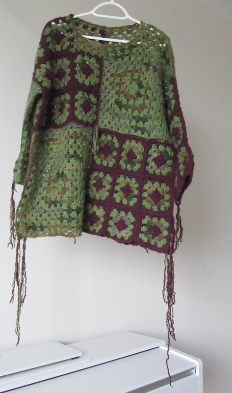 Handmade. Ручная работа. В'язаний гачком джемпер, мотив бабусин квадрат. Полушерсть. В стиле бохо. Может подойти на размер S-M. Длина 67 см Ширина 63 см Ширина рукава 22 см