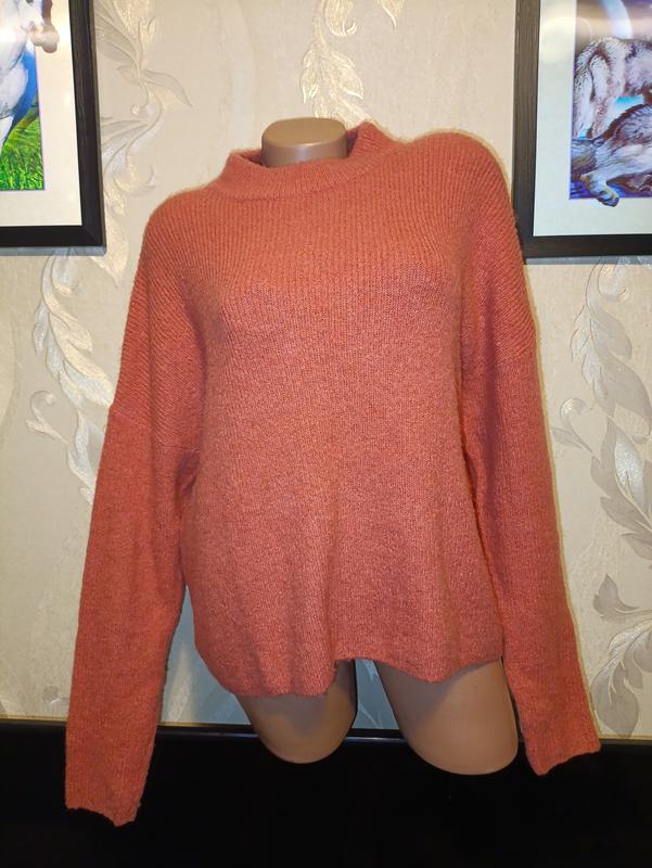 Очень мягкий, полуобхват груди 59+тянется, на бирке М, длина 57, рукав от плеча 50 от шеи 78