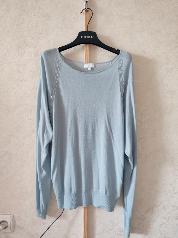 Очень красивый, фото не передаёт, тоненький, в составе шерсть, в идеальном состоянии. По бирке xs можно на М