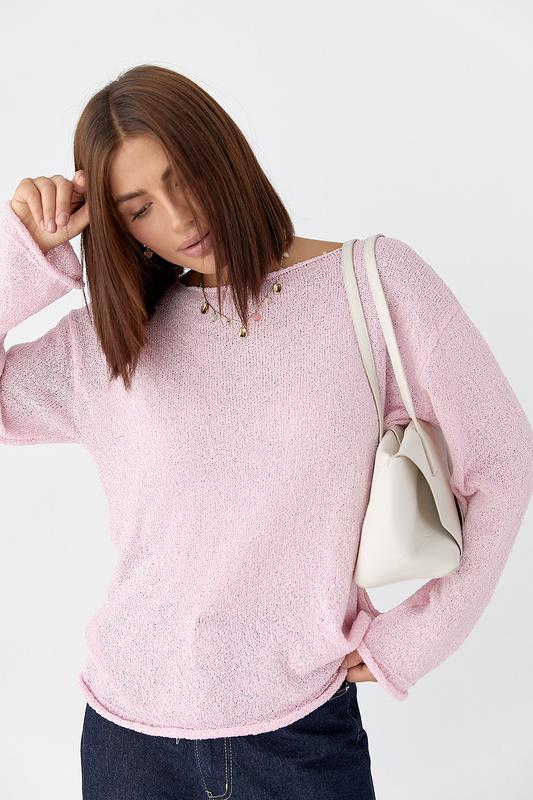 В'язаний джемпер із необробленими краями — сучасна інтерпретація класичної моделі з акцентом на легку недбалість і комфорт. Має вільний прямий крій, який не сковує рухів, довгі рукави та неглибоку горловину, що підходить для будь-якої фігури. Особливість моделі — необроблені краї по низу виробу, рукавах та горловині, які додають стилю effortless і м’якої фактурної виразності.