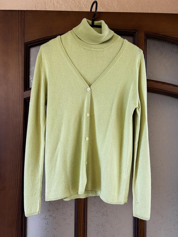 Набір з кардигану та жилетки Розмір М Склад: 55% шовк 45% кашемір В ідеальному стані Без дефектів Довжина жилетки 59 см, кардиган 63 см ПОГ 46 см Довжина рукава 62 см