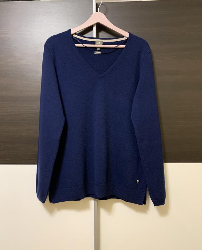 Чудовий, стильний джемпер з біо кашеміру в ідеальному стані. Синій колір, мʼягенький, v- образний виріз, маленький розрізи по боках, внизу вказан бренд, стильний крій, гарний розмір. Одягай і іди! Розмір вказано- XL. Плечі-43, рукава-63, під пахвами-56, по низу-56, довжина-70. Питайте….