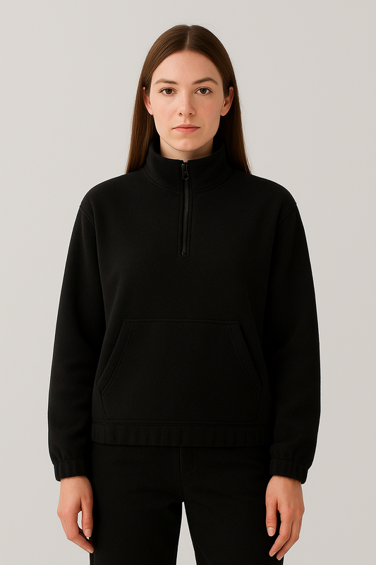 Флисовая кофта черного цвета – тренд этой осени и зимы. Имеет воротник стойку с короткой молнией, удобный карман-кенгуру и резинку внутри по низу и рукавам. Комфортная в носке, сочетается как со спортивной, так и с повседневной одеждой. S Полуобхват груди 50см, Дл. рукава 58см, Длина 59см M Полуобхват груди 52см, Дл. рукава 59см, Длина 60см L Полуобхват груди 54см, Дл. рукава 60см, Длина 62см XL Полуобхват груди 55см, Дл. рукава 61см, Длина 63см XXL Полуобхват груди 57см, Дл. рукава 61см, Длина 66см
