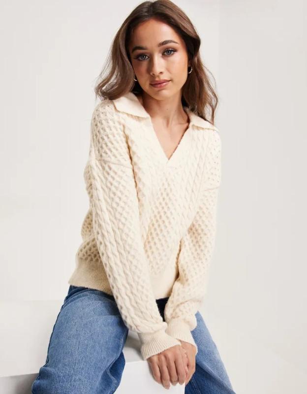 Джемпер от Vila с V-образным вырезом,ворот сверху, ребристые манжеты на концах рукавов и по нижнему краю Рост модели на фото 165 см, размер S Состав: 72 акрил%, 25 полиэстер%, 3 эластан%