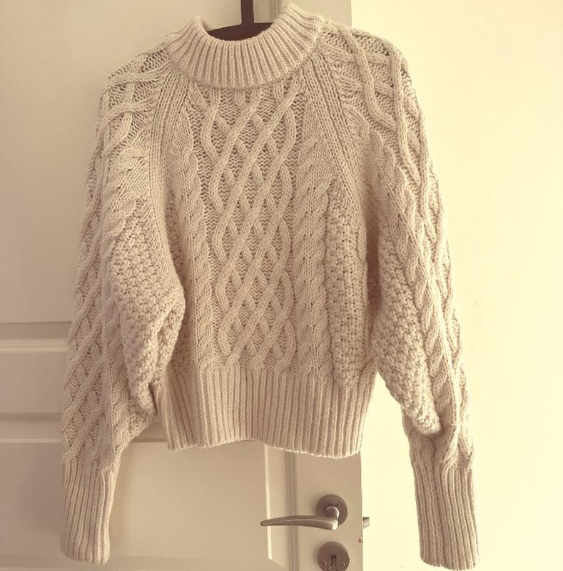 Свитер вязки косами из мягкой пряжи с добавлением шерсти. Ворот стойка, связанный резинкой, а также широкие рукава реглан с отворачивающейся резинкой на манжетах. Полиэстер в составе джемпера - переработанный. Размер - S-XS Материал - Акрил/Шерсть Цвет - Белый/Молочный Принт - Однотонный Страна-производитель товара - Камбоджа Вязка - С узором Фасон рукава - Широкие рукава Состав - 50% полиэстер, 45% акрил, 5% шерсть