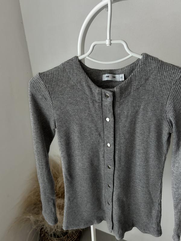 Жіноча кофтинка сірого кольору на кнопках Нова . Не одягала Продаю за смішною ціною зрівняно з цінами цієї фірми Розмір S Довжина рукава від плеча 55 Груди 37 Кофтинка гарно тягнеться В складі є шерсть