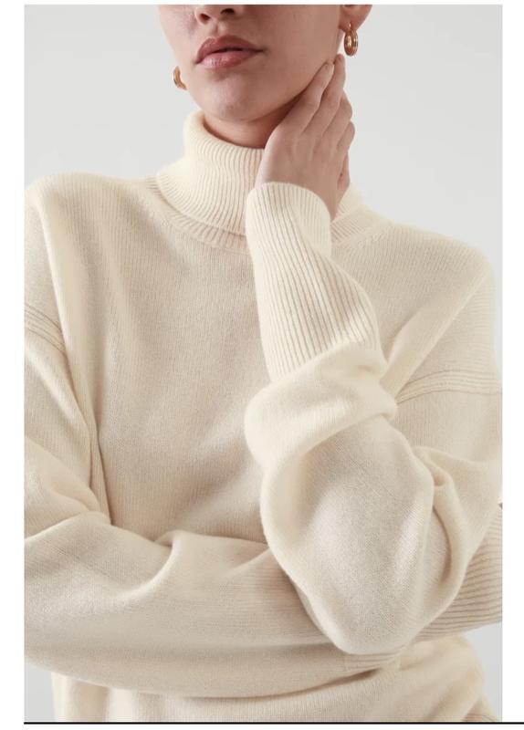 Этот шикарный кашемировый джемпер свободного , удобного кроя – незаменимый элемент многослойной одежды для холодной погоды. Молочный цвет высокое горло и ребристые манжеты.на ощупь невероятно мягкий, состояние нового, размер М 100% кашемир GCS Під руками по 56-57, плечі опущено 56,руках 59, довжина по спинці від горловини 68, низ по 41
