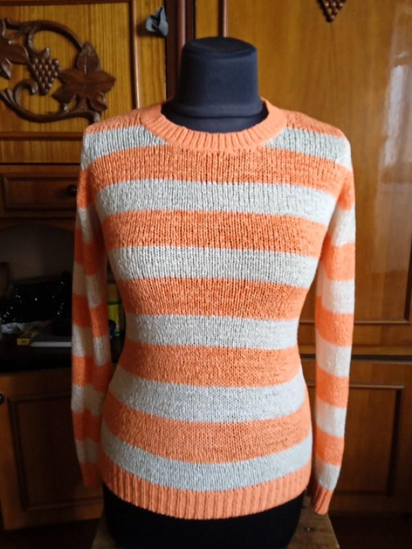 в'язка начебто з тонко нарізаних ленточок-дуже незвична; помаранчевий 🍊 і білий - це просто хіт 2026 року, і смужки також!!!