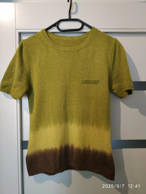 Джемпер футболочка бренда Luiza Cerano. Красивый переход цвета. Хороший состав. Длина - 53, под мышками 42. Хорошо тянется. на наш 44, небольшой 46 р-р. Без дефектов.