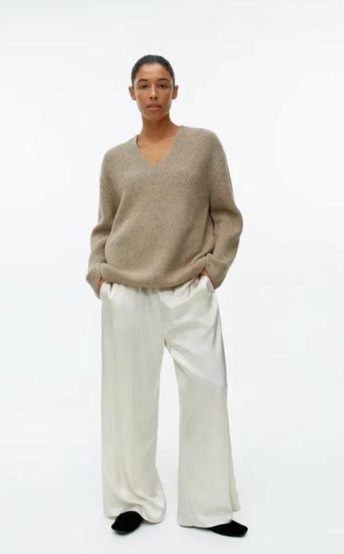 Джемпер V образним вирізом, овер, обємний, поточної колекції, стан нового, шикарного складу, на бірці розмір М , підійде також на L, пог 60, довжина 63, рукав приспущений від шиї 73, аналогічний як на моделі, міксується з різними образами, актуальний колір, виглядає вишукано