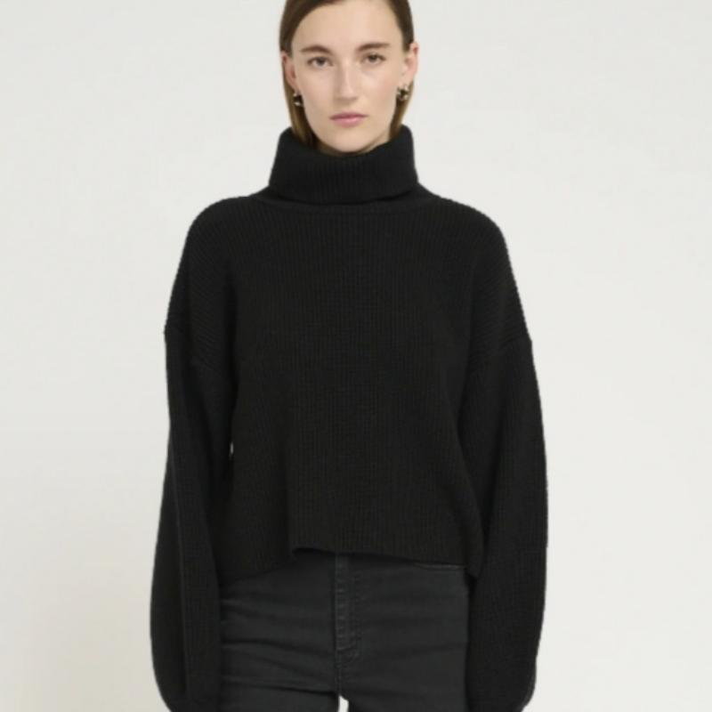 Джемпер люксового датского бренда, трикотаж в рубчик, с высокой горловиной, длинными рукавами, спереди немного короче, по бокам разрезы