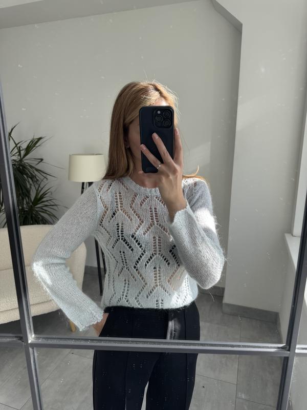 Ніжно бірюзовий піврозорий джемпер з мохером у складі 🩵 Р-р S-M півобʼєм грудей 46 довжина 61 рукав 59 💲 900 uan