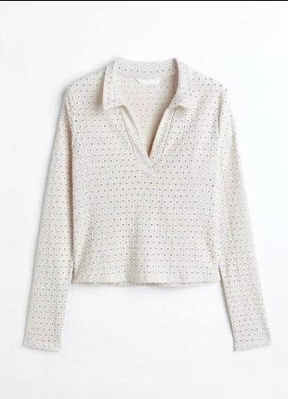 Бежева перфорована кофта поло у розмірі S.Довжина 50 см,ширина 41 см,рукав 62 см