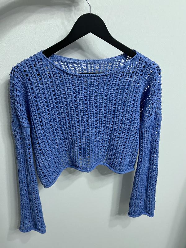 Кофта-сітка яскраво-волошкового кольору oversize✨ Параметри виробу: • ОГ: 124 см • Довжина (від плеча до низу): 37 см • Довжина рукава: - від горловини: 69 см - від плечового шва (плечі опущені): 46 см • Ширина горловини: 26 см Без бірок (зовнішніх та внутрішніх), в ідеальному стані 👍🏻
