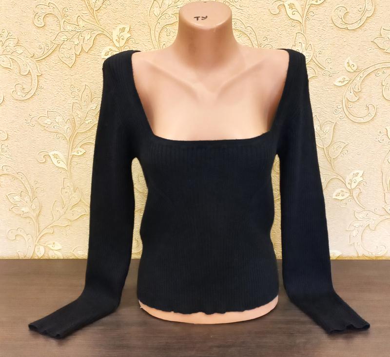 Стильный, теплый джемпер женский черный с широким декольте. Длина 51 см, длина рукава 59 см, ОГ 80-100 см