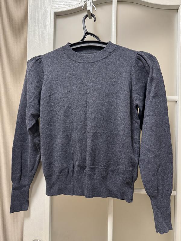 Темно-сірий джемпер від Whistles - нові джемпери цього бренду коштують від 50 фунтів на знижках і більше. Невеличкий комірець-стійка, внизу та на манжетах типу резинки. Рукав - невеликий ліхтарик. Склад: бавовна та перероблений поліестер. Стан чудовий, дефектів немає, лише невеликі сліди носіння, але навіть машинка від катишок їх поки що не бере)) Розмір вказаний 10/38/6, на С сяде найкраще.