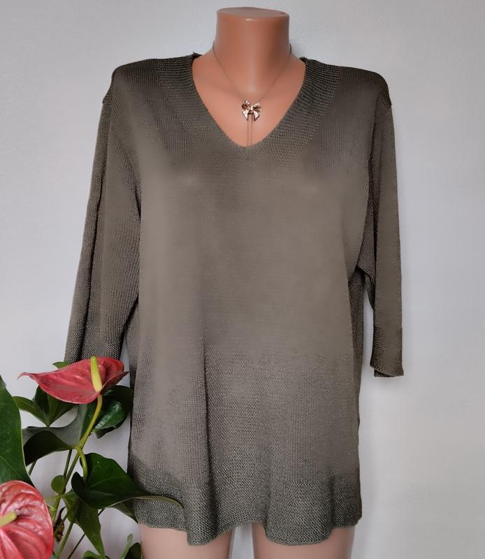 Классный свитер джемпер большого размера, по бокам есть разрезы. Бирок нет, смотрите замеры: длина 63 рукав 40 пог 62-76 пост 62-77