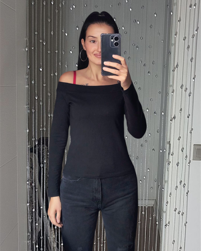 Джемпер черный вырез лодочка