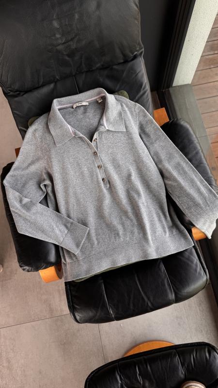 Цей светр з тонкої в'язки має спортивний вигляд поло. Чистий бавовняний трикотаж Відкладний комір з планкою на ґудзиках середньої довжини Ґудзики з імітацією рогу Деталі в'язання з дірок на рукавах