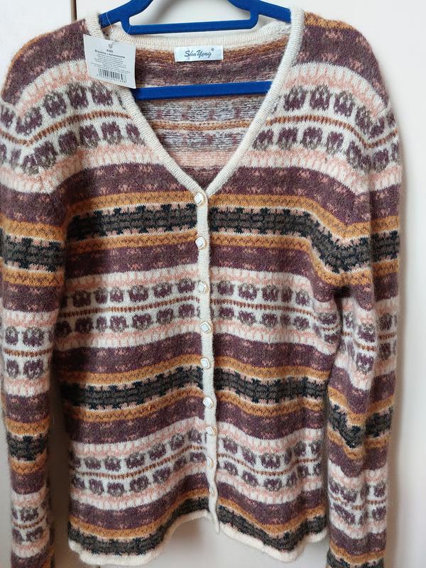 Свитер женочий, трикотаж с вызерунками, на пуговицах. Ог- 43см, плечi - 40, рукав- 65, длина- 58