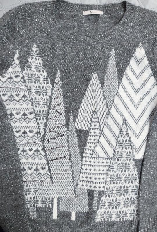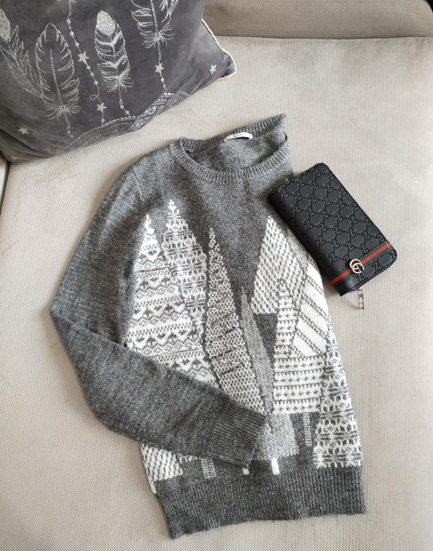 Женский джемпер серого цвета с узором. Длина изделия 63 см, длина рукава 63 см, полуобъем изделия 48 см. Размер 12.