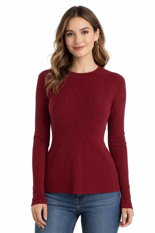 Джемпер Бершка у трендовому кольорі - Бордо. В рубчик, подовжена модель, рукави теж подовжені, обтягуючий силует в талії. Края низу не оброблені. Розмір S. Стан хороший, є незначний дефект (останнє фото), оскільки низ необроблений, непомітно взагалі