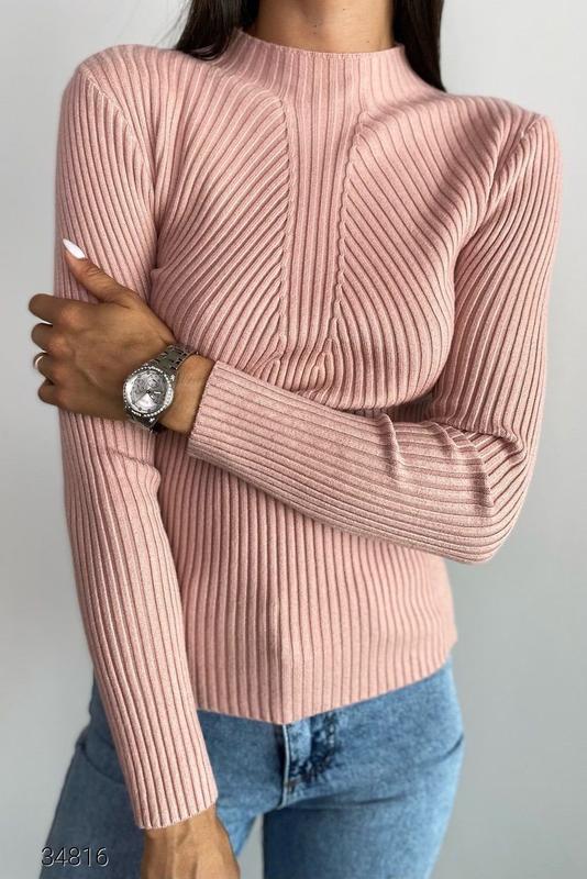 Джемпер в рубчик з коміром-стійкою 34822, 34819, 34816, 34815, 34829, 34827, 34825, 34831 ▪️ матеріал: в'язка ▪️ колір: білий, зелений, гірчичний, рожевий, чорний, сірий, бордовий, бежевий ▪️ розміри: універсальний, підходить на 42-46. Орієнтовні заміри по готовому виробу: Розмір універсальний, підходить на 42-46.
