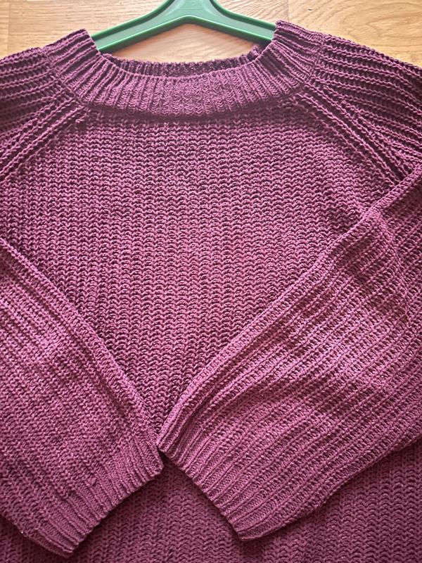 Без нюансів Легкий,не грубий,крупна вязка,гарно тягнеться.Не щільний і не обтяжений. Для оверсайз -просто чудовий Колір більш наближений фото 3 Довж-63 Рукав реглан від горловини-72 Ног-60/80 Талія і низ в таких же параметрах.Можна і більше. По боках розрізи.