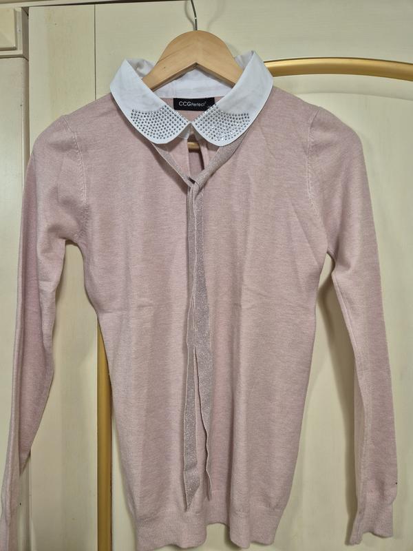Продам новенький лонг- джемпер с белым воротничком, нарядный (по воротнику камушки и завязка на бантик), вискоза, хорошо тянется, замеры: пог- 42 (тянется до 52), длина- 60 см. Новый, есть этикетка.