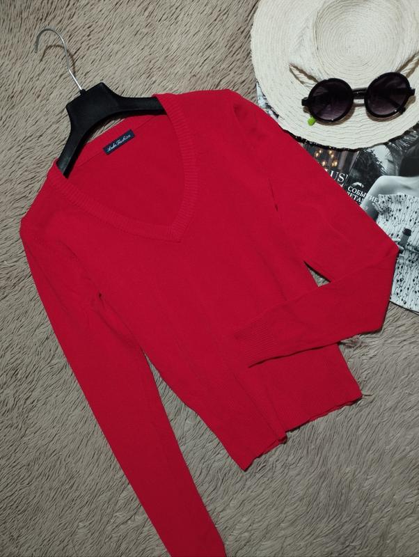 В идеальном состоянии, есть незначительный дефект сбоку (последнее фото), не очень заметно, в цене учтены. Красивый красный джемпер. Ткань средней плотности, тянется. Размер универсальный S-М, но смотрите по замерам Замеры (полуобхват): Грудь 39 (тянется до 50) Талия 26 (тянется до 38) Рукав 61 Длина от плеча 51