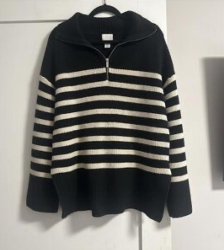 Теплий светр oversize від H&M , в гарному стані, на розмір S , буде також на М. В складі шерсть . Заміри: пог-52 см під рукавами - 58 см рукав від горловини - 67 см, від плеча- 51 cм , прямий до низу , ширина 17,5 см по плечам - 53 см ширина по низу - 46 см довжина від плеча- 66 см