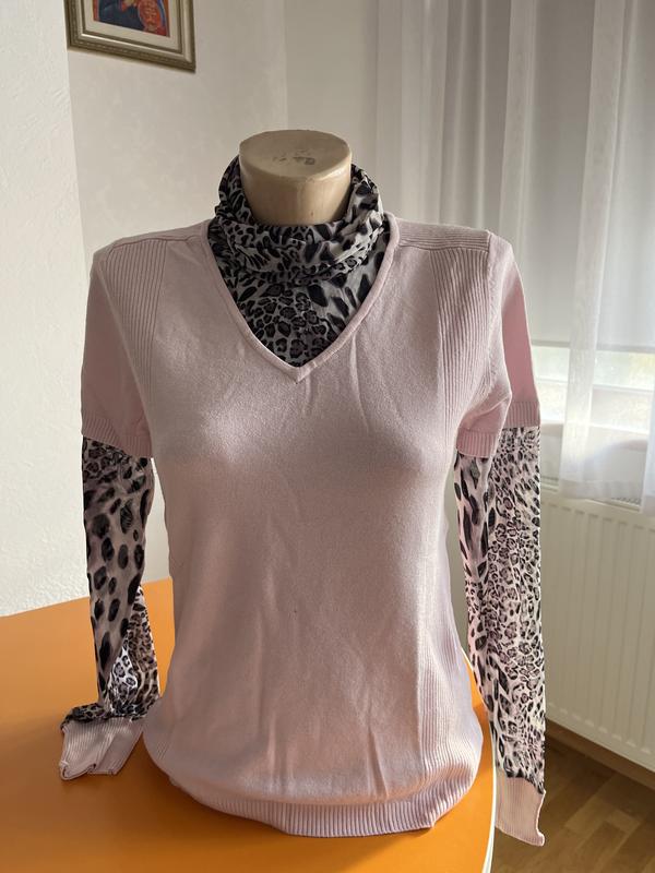 Стильний жіночий джемпер,рожевий,хомут-тігрова сітка,р44-46,новий,трикотаж