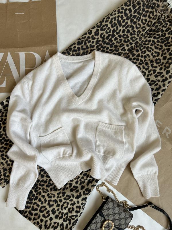 Стильный и базовый джемпер светер 100% кашемир. Просторный и уютный) очень нежный и приятный на ощупь. Пухлый и теплый кашемир. Премиальный бренд, безупречное качество. Верхняя большая бирка отсутствует, а все нижние бирки с маркировкой бренда и составом присутствуют. Состояние идеал.