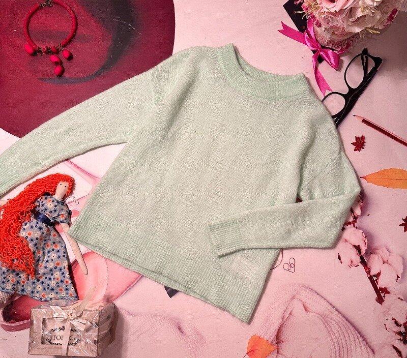 Розмір -S/М або 6/8 Склад: 19% мохер+13% вовна+43% поліамід+20% акрил+5% еластану Колір-мятний Виміри: Довжина виробу-61см Напівобсяг грудей-52см Ширина по талії-49см Напівобєм стегон-52см / 61см ( тягнеться до ) Довжина рукава ( від горловини ) -71см Плечі спущені На сторінці понад 800 товарів різних розмірів і забарвлень. Оновлення кожен день підписуйтесь