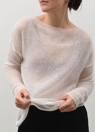 Белая асимметричная паутинка - легкая, невесомая, как облачко! Мягкое плетение окутывает силуэт, создавая нежный образ! Идеальный подходит к сукостям, топам, водолазкам! ПОГ ориентир 50, хороший состав ( вискоза, коттон, акрил, полистер). Указан размер М. крести подписываться, есть много хороших вещей и частое обновление товара!
