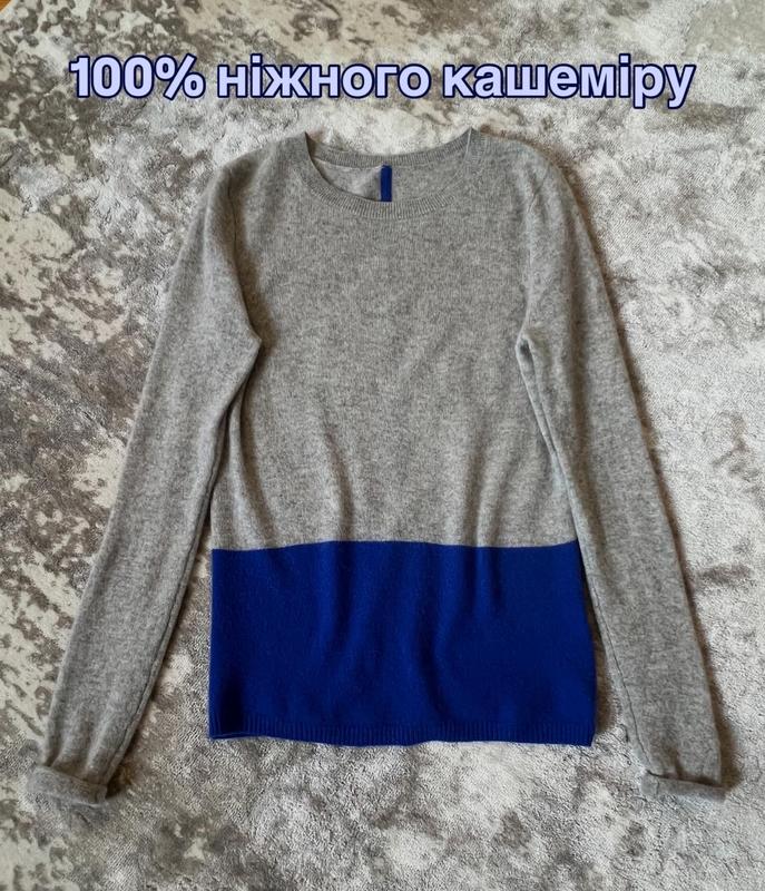 Вишуканий джемпер із натурального кашеміру - мʼякий, теплий і неймовірно приємний до тіла. Стильне поєднання ніжно-сірого та глибокого синього кольорів створює сучасний образ у стилі color block, який легко доповнить як базовий гардероб, так і витончений образ для виходу. Ідеальна посадка, легкість і делікатний блиск кашеміру додають відчуття справжньої розкоші. Склад: 100% кашемір Розмір: S-M ( заміри: 47см- ширина в грудях; 70см- висота; 76см- рукав від горловини; ) Стан: відмінний, без слідів носіння Походження: вироблено в Англії Ціновий сегмент: преміум — подібні вироби з натурального кашеміру коштують від £120 до £200. Ідеальний вибір для тих, хто цінує елегантну простоту, комфорт і натуральність у кожній деталі.