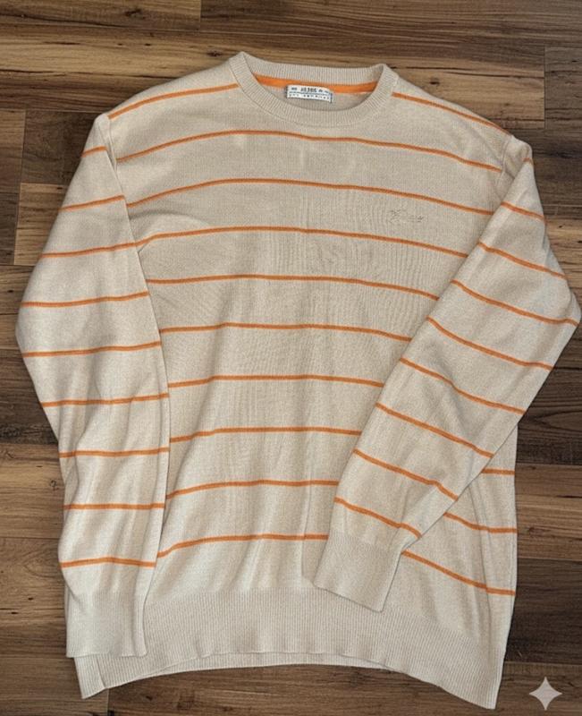 Светр тілесного кольору з помаранчевими смужками. Розмір універсальний, підходить як і S так і M-XL Приємний до тіла. З нюансів тільки невеликий шов сзаду, але він не помітний