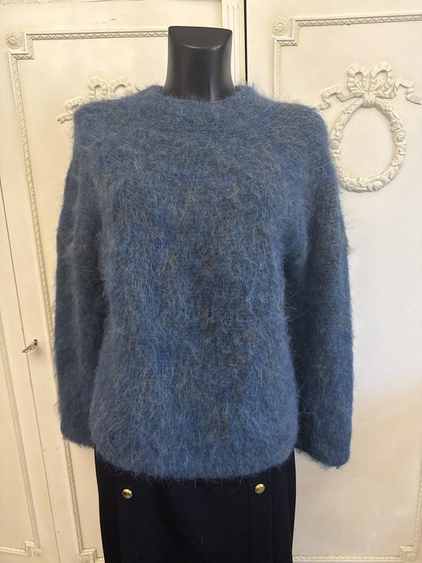 Розкішний теплий Джемпер колір тіффані меланж. Чудова модель, вільний крій, шикарний вільний рукав. Склад:вовна/альпака/поліестер(41/27/32). Розмір по бірці-XL. Заміри: довжина-62 см, ПОГ-53 см, ПОБ-55 см, рукав від ворота-70 см. Ідеальний. Мохнатик!