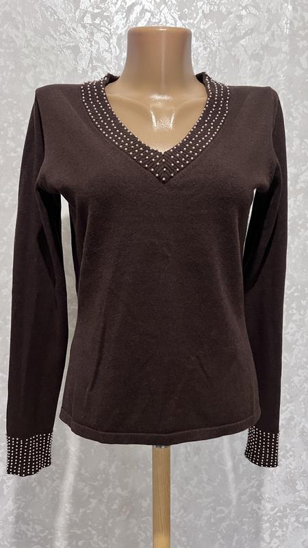 Стан джемпера дуже хороший, без дефектів. Єдине, не вистачає однієї намистинки. Розмір S-M