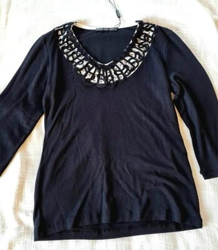Тонкий, можно как блуза Длина 62, между проймами 43, пот 40, поб 45, в спокойном состоянии, эластичный, рукав 45см,3/4