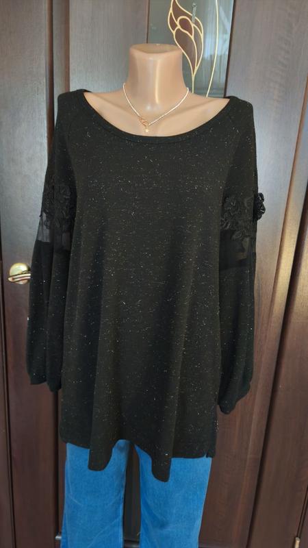 Женская удлиненная кофта декорирована розами на рукавах и спинке, ткань с люрексной нитью, с вырезом сзади Стан супер Замер: Длина спереди 72 см, пог 56 см тянет до 62 см, рукав от шеи 63 см, длина сзади 79 см