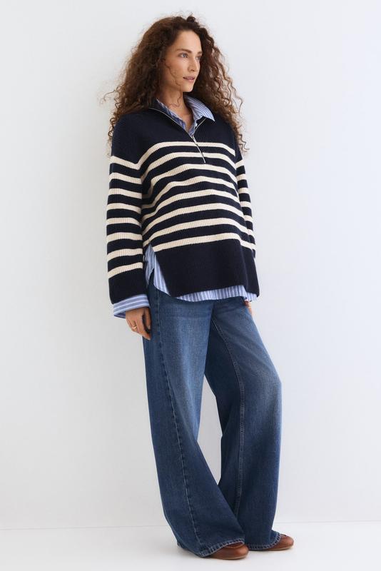 Класний джемпер - зіпка з широкими рукавами від «Н&М». Розмір S, але можна сміло на М. Крій вільний, прямий. Весь опис і склад є у фото. Довжина по спинці - 70 см, плечі - 56 см, рукав - 55 см, НОГ - 56 см (добре тягнеться) , НОТ - 55 см.
